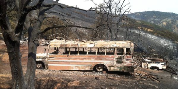 Aluminum had melted into snakes that bled across the land, down the hillsides- decorating the ground in silver rivers. The chastity of my bus was bent and twisted and burnt inside and out. My tiny home was now a pile of ashes. My cozy bed - a tangled mess of metal coils. Both sickening and heart wrenching, carcasses of my beloved chickens and ducks were found all over the property- having tried to run for their lives but to no avail. And then there was the forest. A century old forest of majestic Oaks interwoven with red Manzanitas were left blackened and dead. I knelt to the ground and asked for clarity. What should I do? "Let it heal and return", was what I heard.